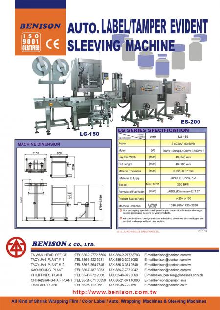 Основанная в 1962 году и расположенная на Тайване, Benison & Co., Ltd. является ведущим поставщиком упаковочных решений.Мы специализируемся на Автоматический аппликатор этикеток на корпусе/аппликатор термоусадочных рукавов с защитой от вскрытия (машина для термоусадочных рукавов), (250BPM), упаковке в термоусадочную пленку, термоусадочных пленках, защитных лентах и автоматических упаковочных машинах для пищевой, напитковой, фармацевтической и промышленной отраслей.Наши продукты включают горизонтальные упаковщики, автоматические аппликаторы рукавных этикеток и машины для обертывания, все из которых разработаны для повышения эффективности и надежности производства.