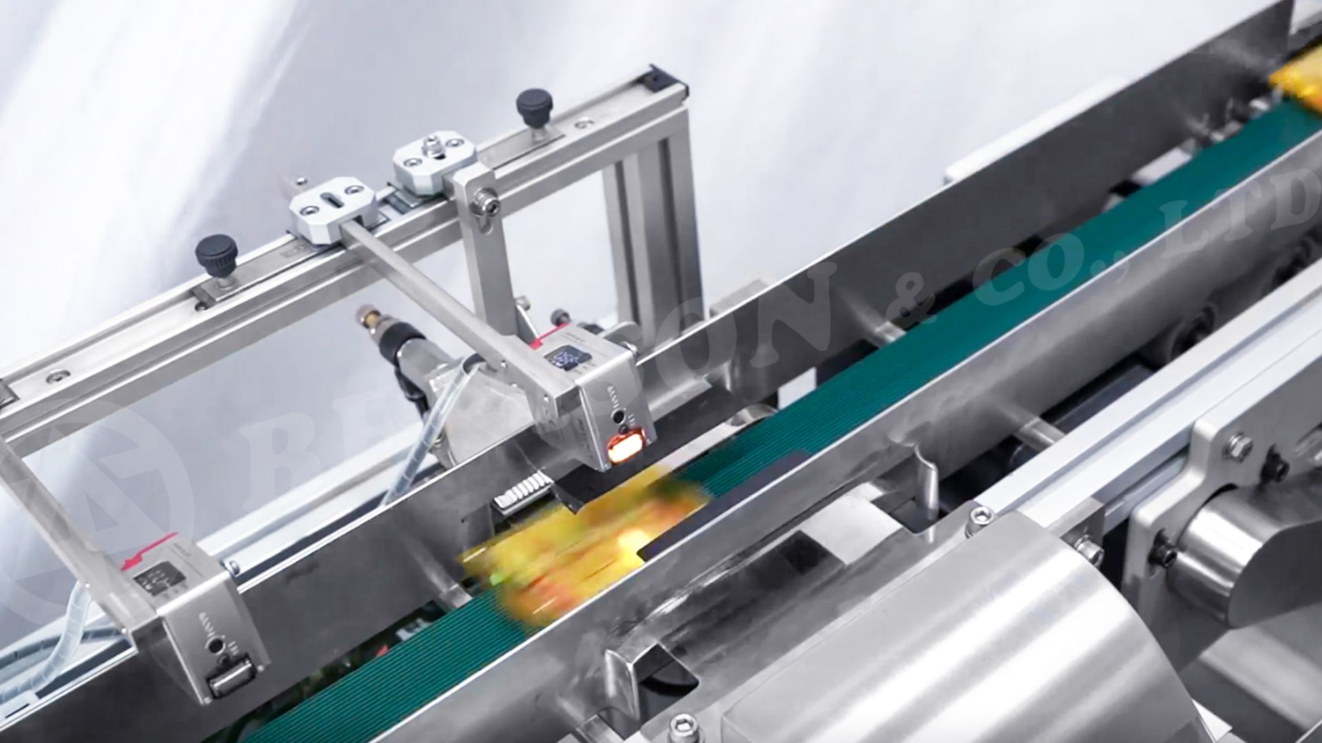 在諮詢過程中,客戶提到包裝過程常出現數量錯誤與漏放問題。我們為此設計多組電眼偵測與剔除系統,能即時辨識紙盒不足、產品間距異常或未投入說明書等狀況,並自動排除不良品。這樣的設計大幅提升了產線穩定性,也有效降低不良率與整體成本。